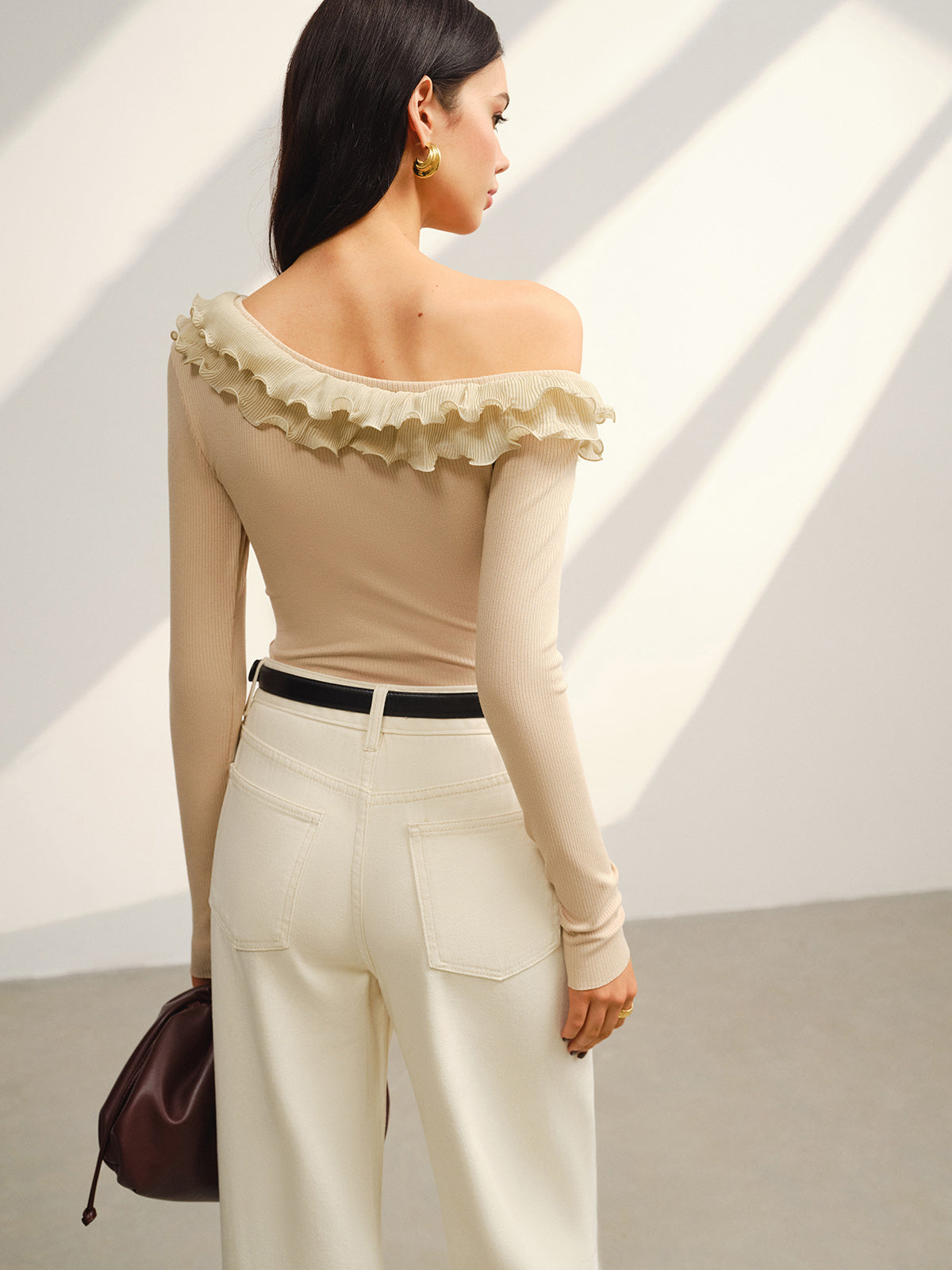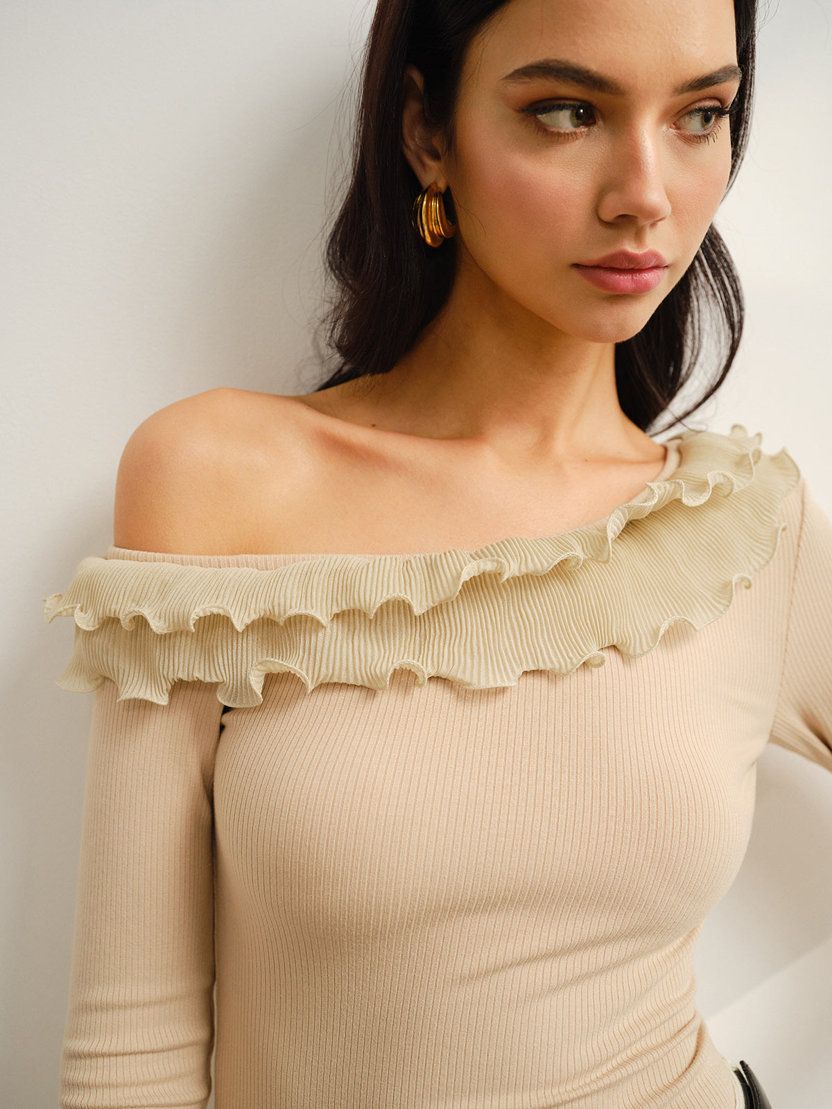 Şık Marul Kenar Detaylı Trendy Asimetrik Yaka Jarse Üst