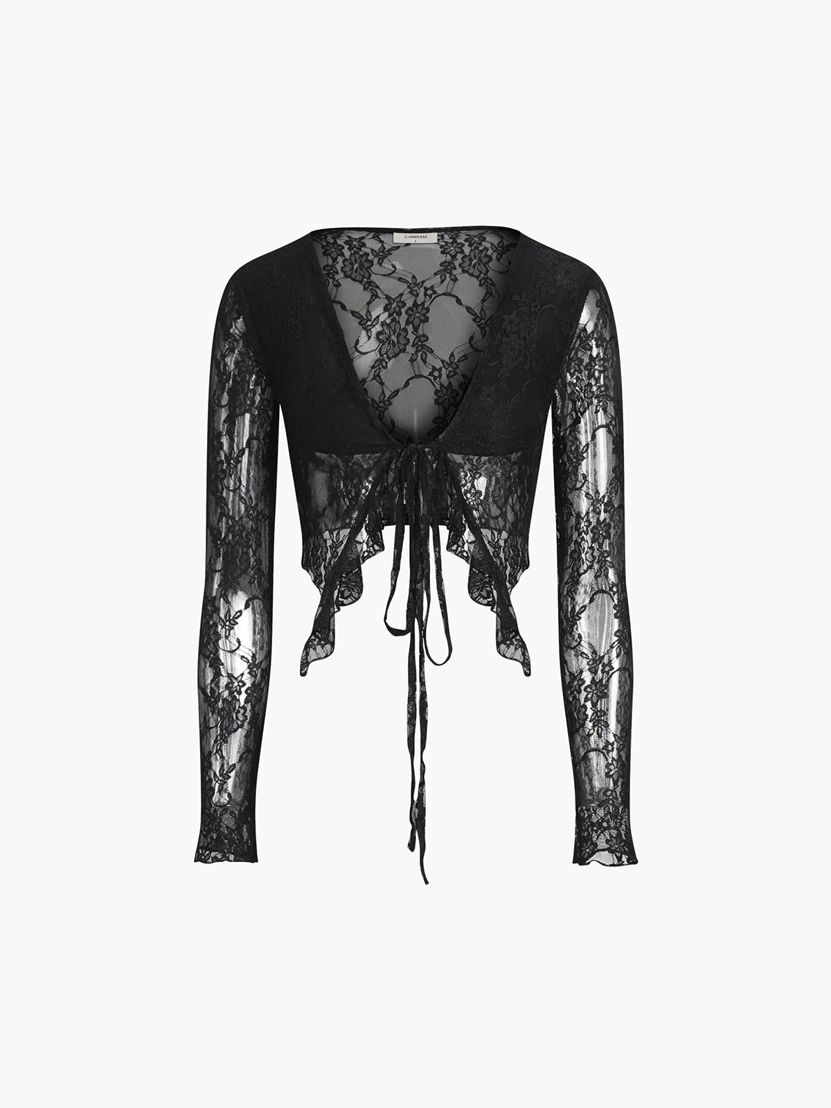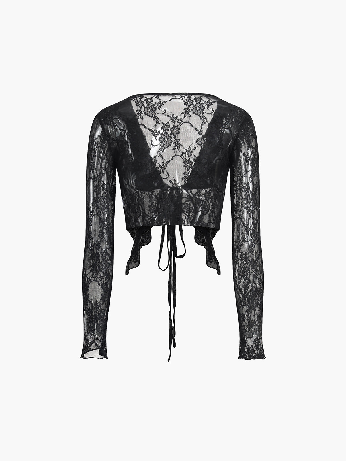 Dantel V Yaka Düğümlü Uzun Kollu Bluz